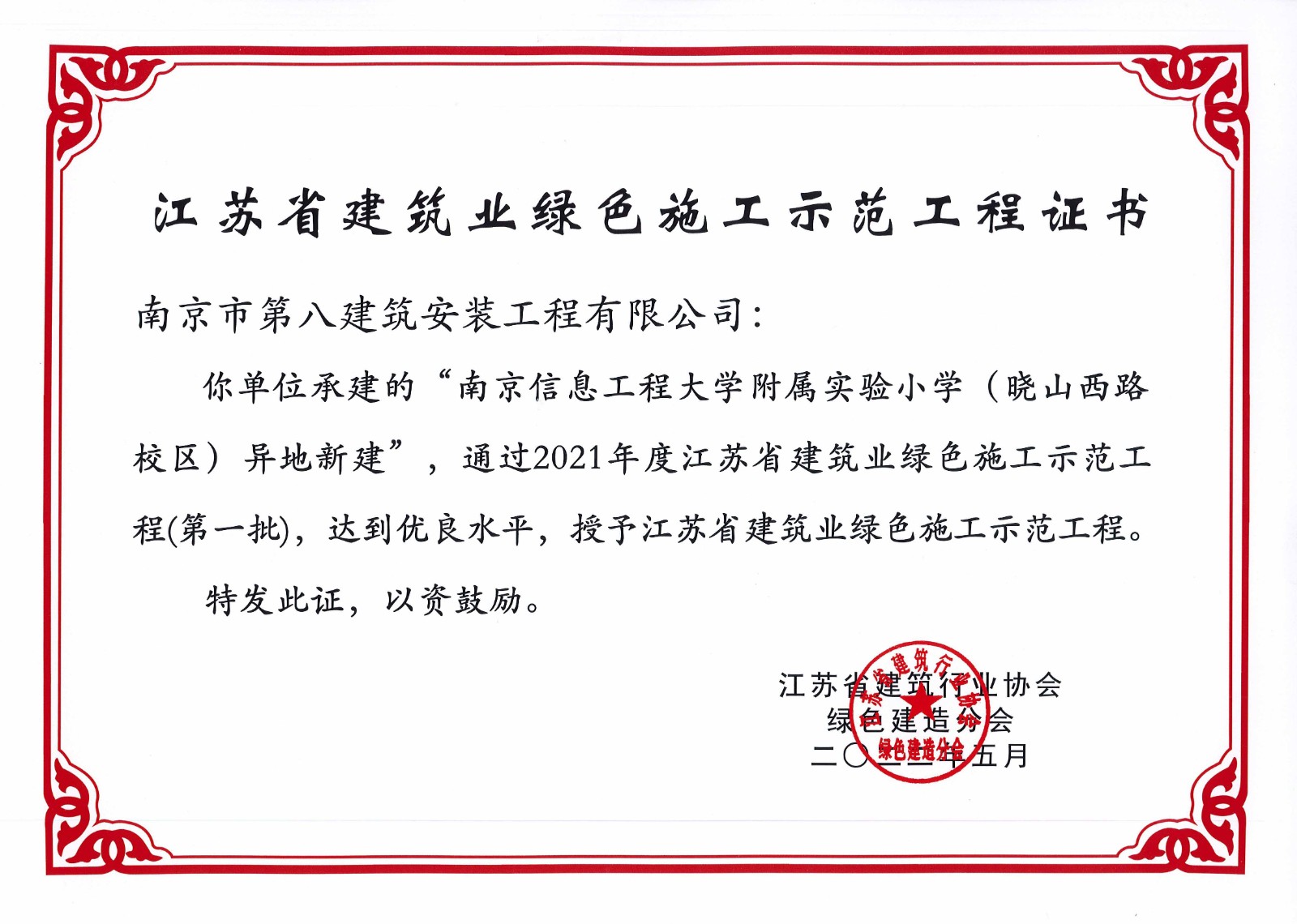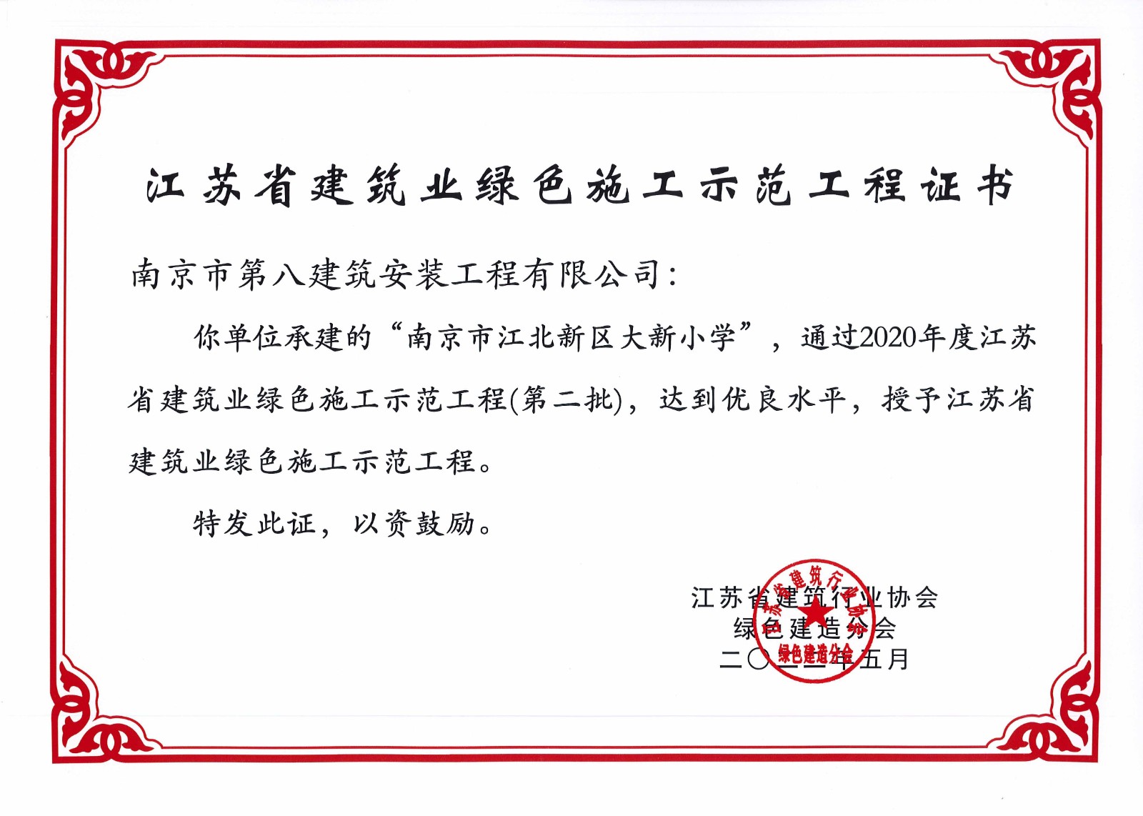 江北新區大新小學等3個項目榮獲江蘇省建筑業綠色施工示范工程